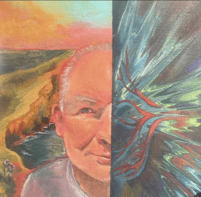 I am an artist who turned to painting as an outlet for my creativity, especially after being diagnosed with trigeminal neuralgia (TN). This condition deeply influences my work, which often reflects the pain, fear, and struggles associated with chronic illness. My abstract paintings depict these emotions, with one piece illustrating the contrast between pain and hope, featuring the Isle of Skye in the background—a place dear to my heart.